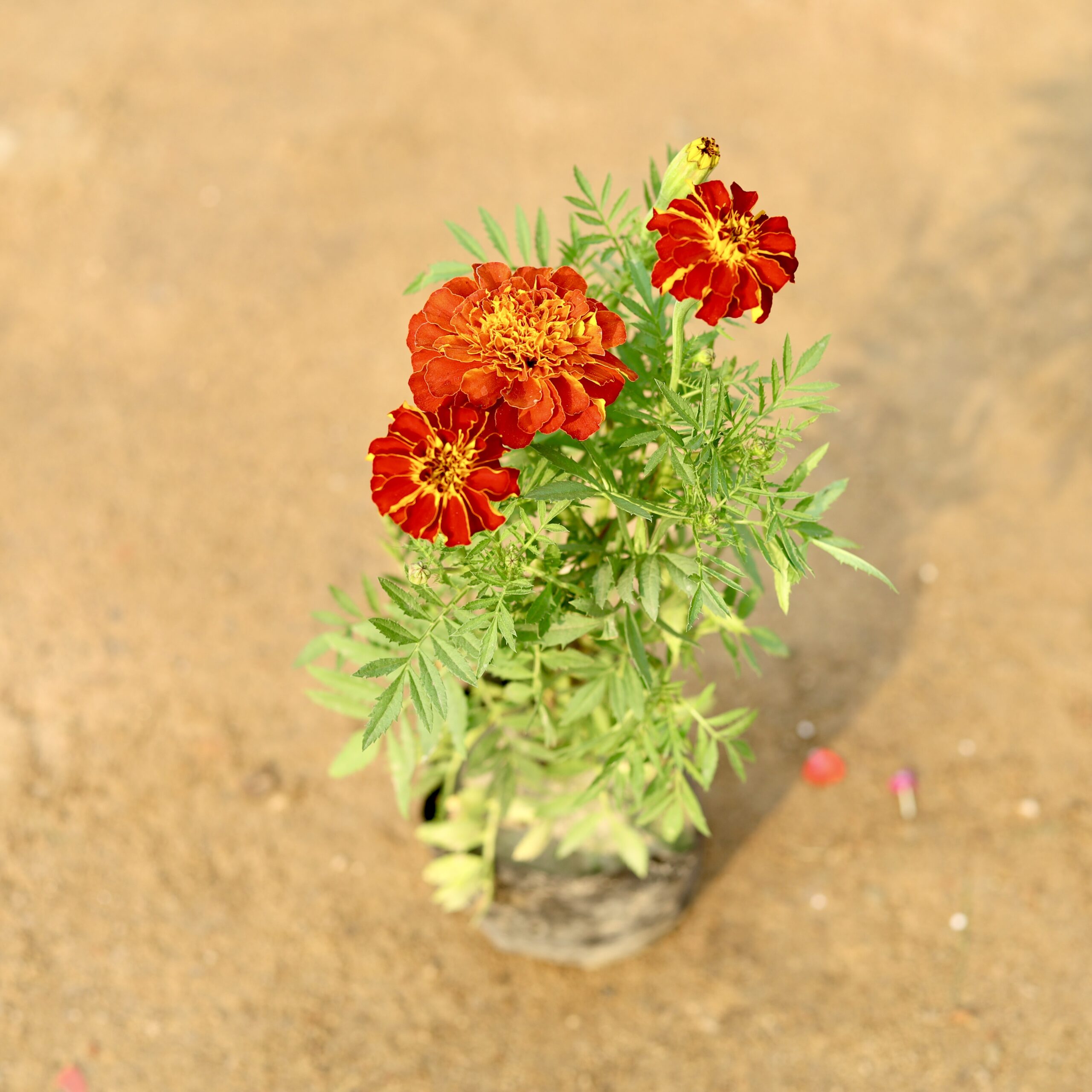 French marigolds are compact, brightly colored flowers known for their ruffled petals and vibrant shades of yellow, orange, and red. Smaller than African marigolds, they produce abundant blooms and release a mild, pleasant scent. French marigolds are easy to grow, thrive in sunny spots, and are often used in borders, containers, and vegetable gardens for their natural pest-repelling properties.
